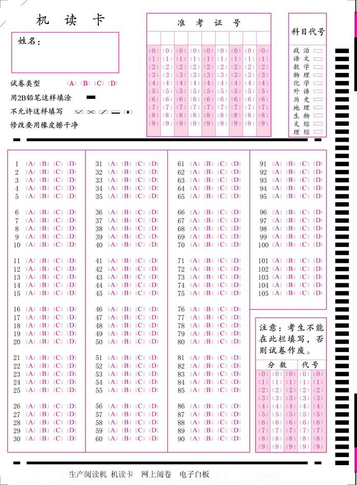 答案卡與學(xué)生卡類型不一致會有“A傳感器同步框計數(shù)值超界”這樣的錯誤,怎么辦?又到期末了,很多學(xué)校在考試中都會使用答題卡,既能減輕老師判卷的壓力,又能提高準確性,一般學(xué)校閱卡會有專人負責,考試后監(jiān)考老師收取學(xué)生的答題卡交到閱卡部門,由判卷老師填涂一份標準答案卡,這時就會有這樣的問題,比如學(xué)生用的是50題的小卡,老師的答案涂的是105題的大卡,怎么辦,在按答按涂張小卡嗎?其實是有辦法處理的。